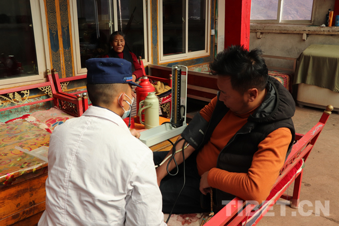 圖為卡若區(qū)森林消防中隊衛(wèi)生員了解困難群眾身體狀況