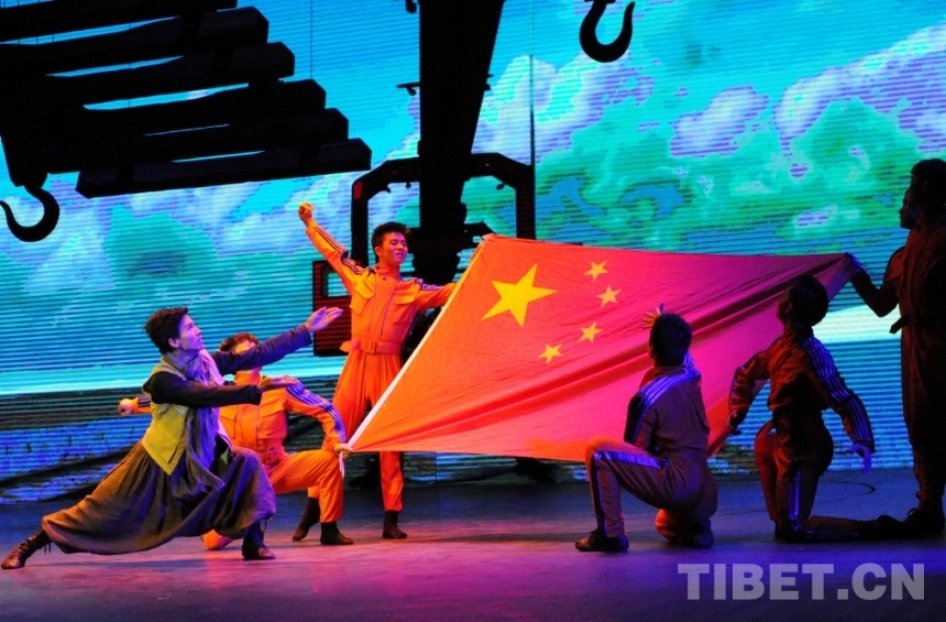圖為《圓夢》歌舞劇在國家大劇院的演出劇照——青藏鐵路成功鋪軌(唐召明2015年10月13日攝)