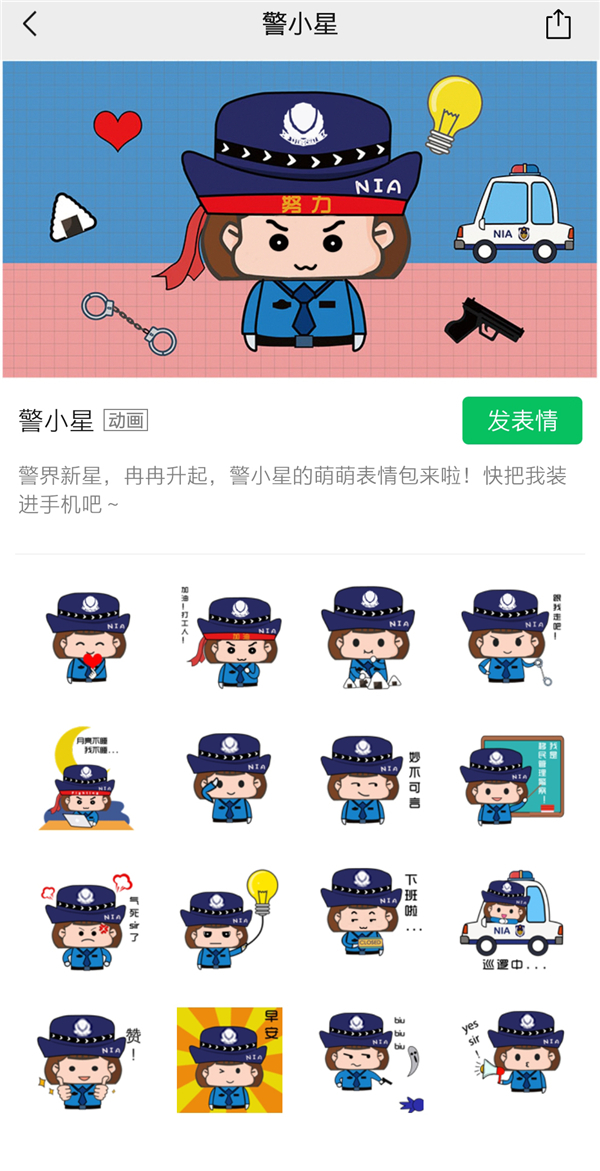 “每一個(gè)表情的背后都有一段真實(shí)的警察故事?!饼埿▲P說,加班到凌晨2點(diǎn)的真實(shí)體驗(yàn)誕生了女警版“加油吧 打工人”,看見女警們在一線辛苦執(zhí)勤巡邏,誕生了女警版“巡邏中”。 為何給這名呆萌的“女警”取名警小星?龍小鳳解釋,“ ‘警小星’就是‘警界冉冉升起的新星’的意思”。