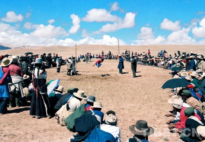 圖為在文部辦事處(現(xiàn)改為尼瑪縣)賽馬會上,所舉行的跳遠(yuǎn)比賽(唐召明1987年攝)