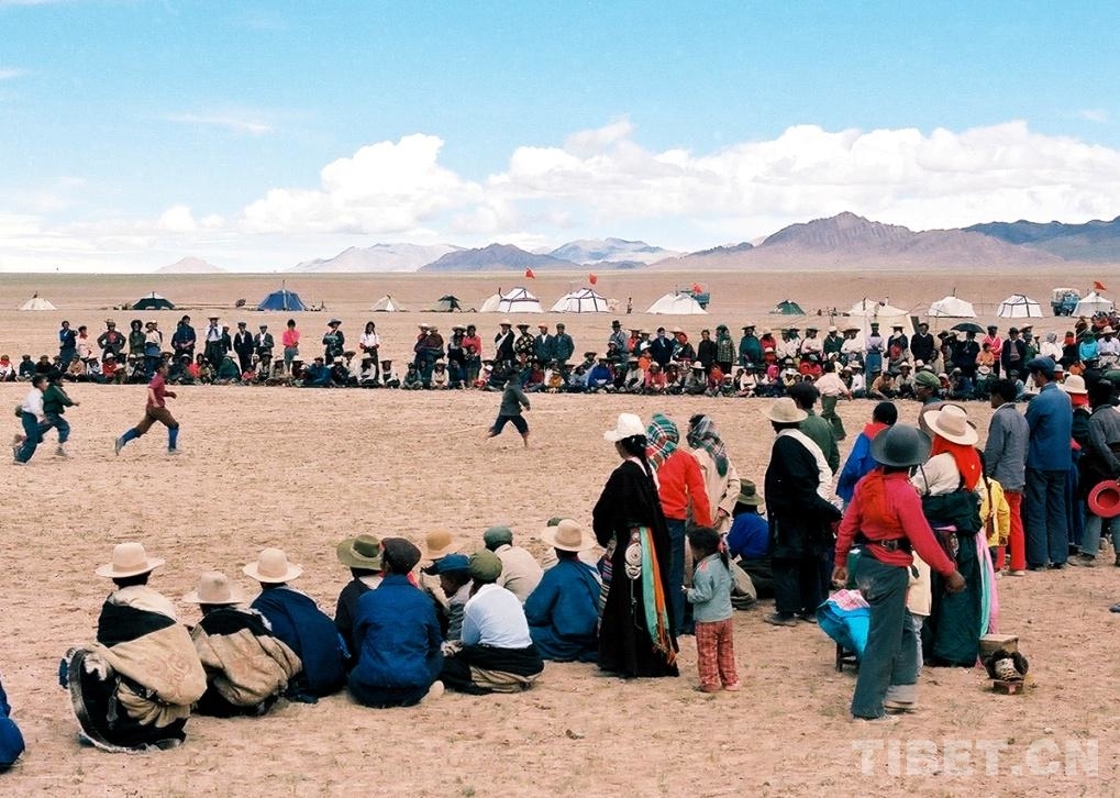 圖為在文部辦事處(現(xiàn)改為尼瑪縣)賽馬會上,所舉行的長跑比賽(唐召明1987年攝)