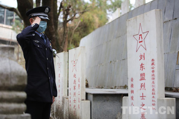 圖為西藏聶拉木出入境邊防檢查站民警到樟木烈士陵園開展清明節(jié)祭奠革命先烈活動(dòng) 攝影:索朗次仁