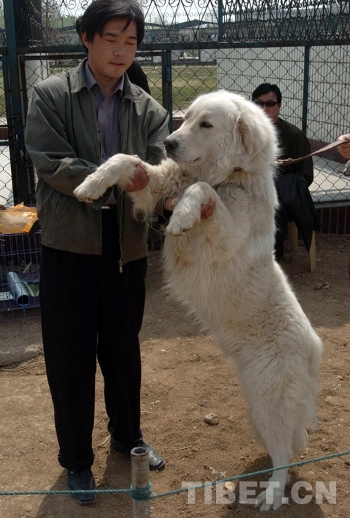 這是北京寵物園藏獒展上的一條全身通白的雪獒在參展(唐召明2004年4月17日攝)