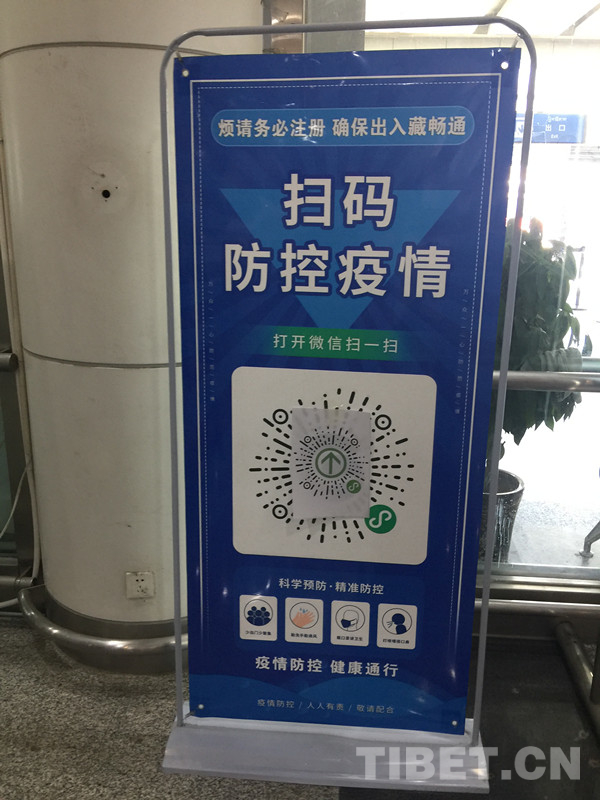 圖為貢嘎機(jī)場(chǎng)疫情防控掃碼標(biāo)示