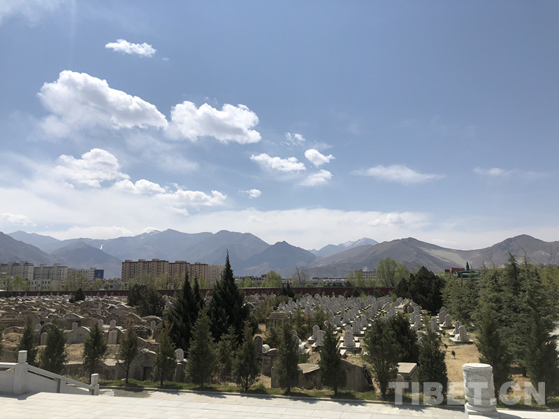 一到陵園,大門口一幅“為有犧牲多壯志、敢教日月?lián)Q新天”的對(duì)聯(lián),也讓我們此次祭奠活動(dòng)突然有了一種特別的精神支撐,我感覺這句話放在西藏這個(gè)地方最合適,但暫時(shí)說不出為什么。我們登記以后,緩步走進(jìn)陵園。整個(gè)陵園正前方一大片寬闊的廣場(chǎng),題有“革命烈士永垂不朽”漢藏兩種文字的紀(jì)念碑,默默地矗立在廣場(chǎng)中央,碑的左右兩邊各立著一面一人高的國旗和黨旗。花崗石顏色的巨大紀(jì)念碑和肅穆的廣場(chǎng),映襯著鮮艷的國旗和黨旗,背后是圍繞著墨綠松柏和剛剛發(fā)芽唐柳的烈士墓地,更遠(yuǎn)處是拉薩河谷的壯闊群山和高原湛藍(lán)的天空,風(fēng)從這之間吹過,似乎在訴說著這片土地上發(fā)生的故事和長眠此處烈士們經(jīng)歷過的波瀾壯闊。我們?nèi)〕龌ㄊ凸_(dá),獻(xiàn)至紀(jì)念碑,并肅穆感懷革命烈士的英勇壯烈和無私奉獻(xiàn),最后用三鞠躬表達(dá)我們對(duì)先烈的緬懷和致敬。