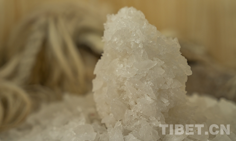 圖為鹽湖鄉(xiāng)粗鹽巴加工廠里采集的結(jié)晶鹽 攝影:趙耀