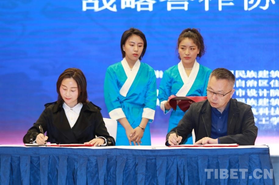 圖為拉薩市設(shè)計(jì)院與中國(guó)民族建筑研究會(huì)、西安建筑科技大學(xué)建筑學(xué)院簽訂戰(zhàn)略合作協(xié)議