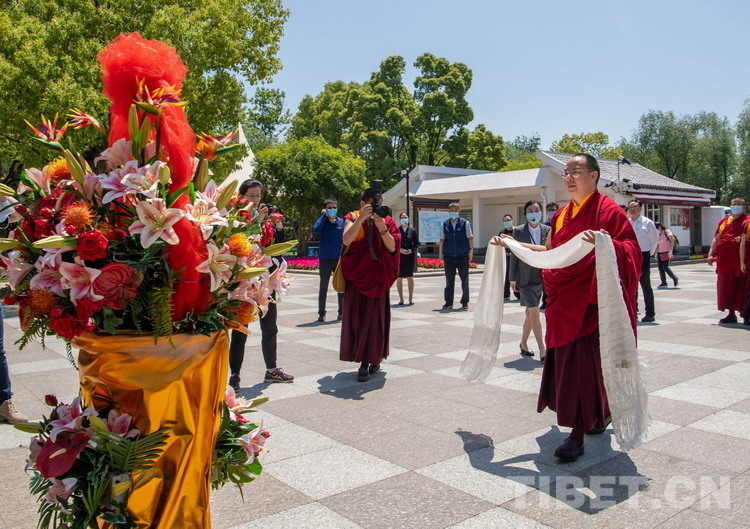 10日上午,班禪專程來到位于上海市青浦區(qū)練塘鎮(zhèn)的陳云紀(jì)念館,認(rèn)真聽取了陳云同志有關(guān)事跡,并向陳云銅像敬獻(xiàn)哈達(dá),追思陳云同志愛國憂民、為共產(chǎn)主義事業(yè)鞠躬盡瘁的偉大一生……