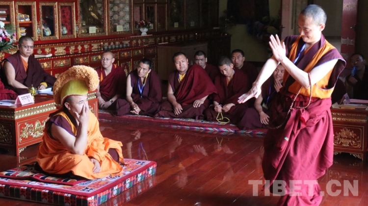 圖為薩迦派辯經(jīng)考試現(xiàn)場