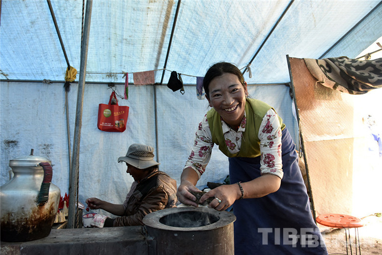圖為次供的妻子白瑪卓嘎在帳篷里忙碌 攝影:王媛媛