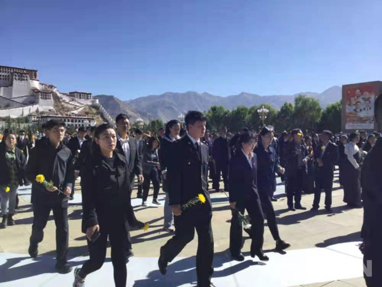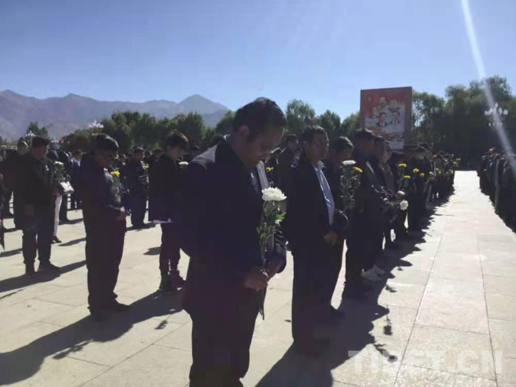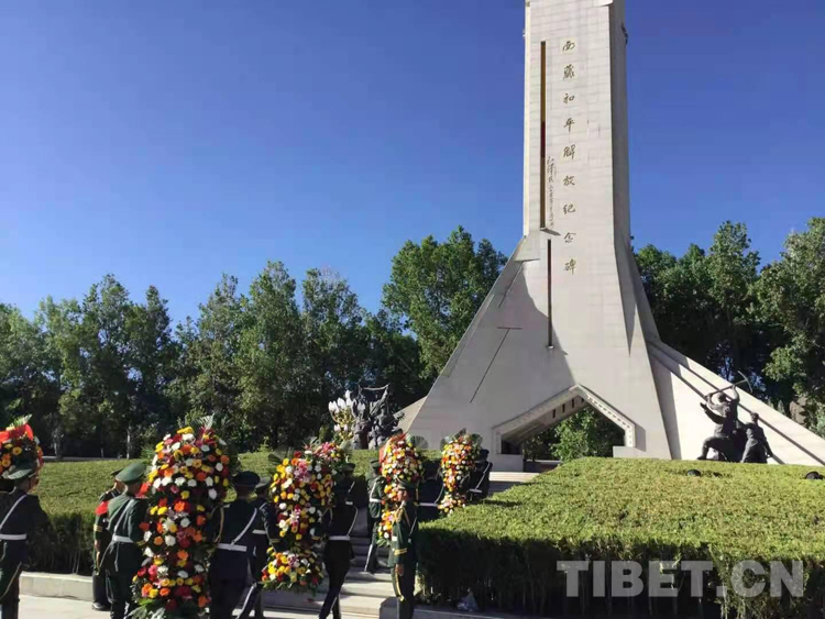 中共西藏自治區(qū)委員會(huì)、西藏自治區(qū)人大常委會(huì)、西藏自治區(qū)人民政府及各界群眾等分別敬獻(xiàn)的9個(gè)大型花籃一字排開(kāi),花籃紅色緞帶上書(shū)寫(xiě)“革命先烈永垂不朽”8個(gè)金色大字。