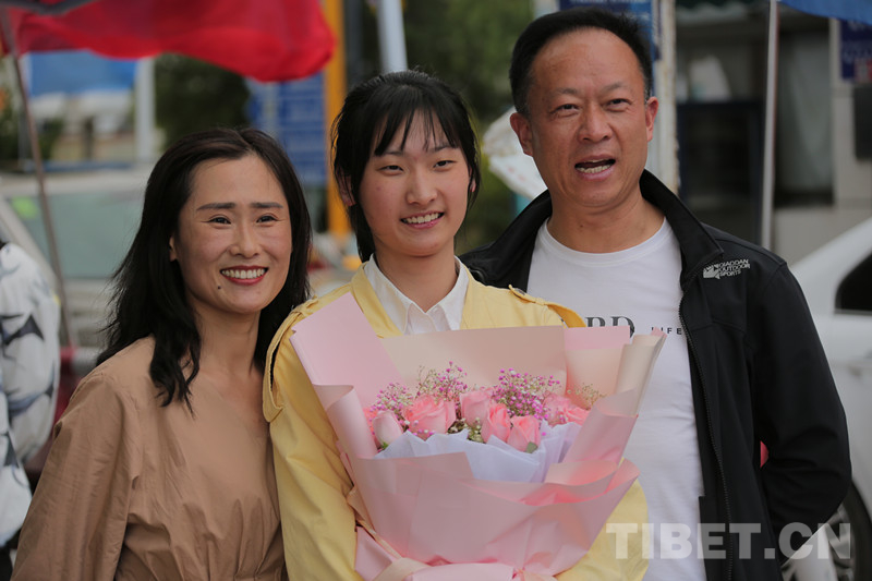 當(dāng)最后一門考試結(jié)束,考生們陸陸續(xù)續(xù)走出考場,迫不及待地和考場外迎接他們的家長老師分享自己此時此刻的心情:“整體感覺考得還可以,我覺得我能考上西藏大學(xué)了?!薄皵?shù)學(xué)稍微有點難,但其他的還可以?!薄敖K于結(jié)束了,我們一起去林芝玩幾天吧!”家長和老師們或送上鮮花,傳遞美好的祝福;或拍照留念,記錄下這珍貴的瞬間。