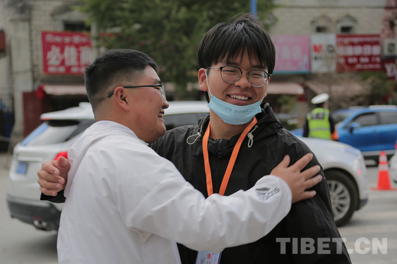 西藏軍區(qū)拉薩八一學(xué)校的成尚勇老師在高考的幾天里一直在“陪考”,考試結(jié)束后,他和自己的學(xué)生一一擁抱告別,滿眼不舍地送自己的學(xué)生一個個離開。他說,“我們原地返回,他們展翅高飛。陪了他們?nèi)辏院缶蜎]辦法繼續(xù)陪伴他們成長,心里會有一些不舍。”
