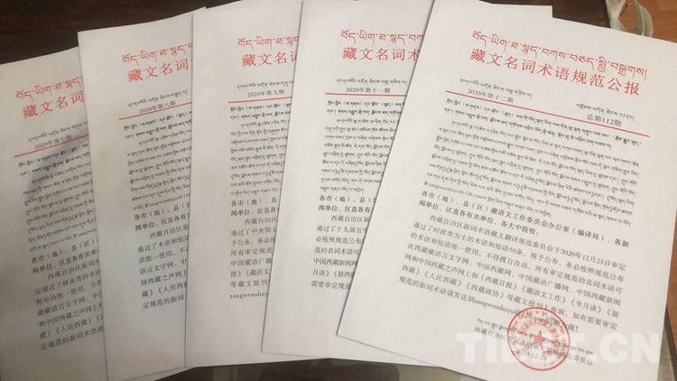 據(jù)介紹,在1987年西藏自治區(qū)藏語文工作委員會辦公室成立初期,成立了西藏自治區(qū)辭書審定領導小組,負責編纂審定漢藏對照行業(yè)詞典;1995年在全國藏語術語標準化委員會的領導下,西藏自治區(qū)藏語委辦和編譯局組織本單位專家和西藏日報、廣電、教材編譯等部門專家,定期不定期地收集審定出現(xiàn)頻率較高的新詞術語,并已活頁形式發(fā)布。