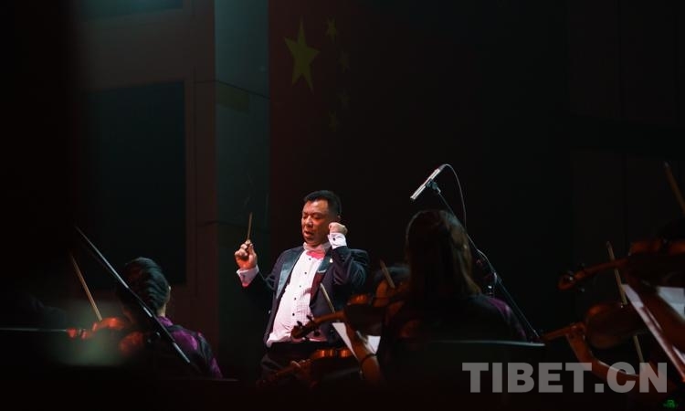 音樂會現(xiàn)場,管弦樂《節(jié)日的拉薩》、管弦樂《紅色娘子軍》序曲、女聲獨唱《唱支山歌給黨聽》、管弦樂《我的祖國》、獨唱《我愛你,中國》、小提琴與樂隊《共產(chǎn)黨來了苦變甜》等經(jīng)典曲目輪番登場。