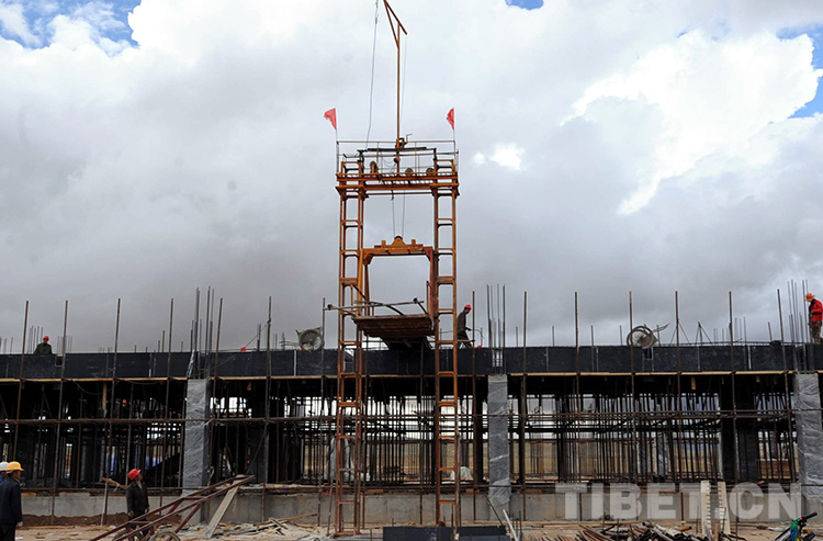 這是中國石化所援建的班戈縣小學(xué)大樓正在施工(唐召明2009年攝)