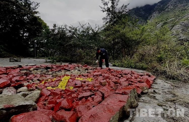 中國西藏網(wǎng)訊 “這些石頭都是地震過后山體滑坡遺留下來的,我們現(xiàn)在把它搬過來砌成黨旗,也算是充分發(fā)揮它的作用了?!痹撜救朦h積極分子徐新新一邊搬著石頭一邊對記者說道。