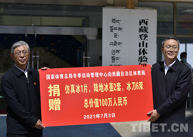 中國(guó)西藏網(wǎng)訊 7月3日,國(guó)家體育總局冬季運(yùn)動(dòng)管理中心向西藏自治區(qū)體育局捐贈(zèng)物資儀式在拉薩市舉行。西藏自治區(qū)體育局獲贈(zèng)仿真冰、陸地冰壺、冰刀等總價(jià)值100萬(wàn)元的設(shè)施設(shè)備,助力冬季運(yùn)動(dòng)項(xiàng)目發(fā)展。