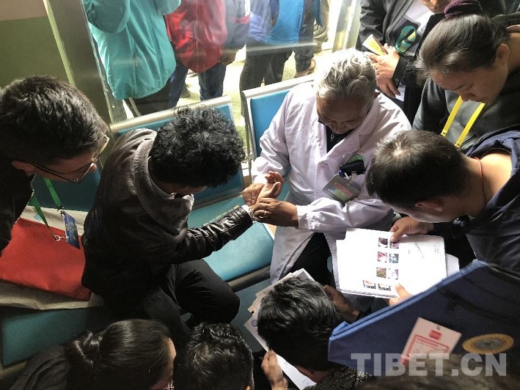 圖為著名藏醫(yī)藥專家旦松扎巴正在號(hào)脈 攝影:羅布扎西