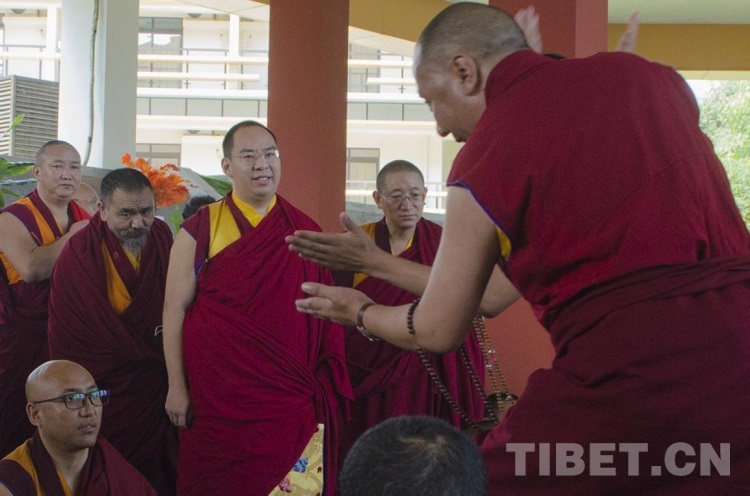 圖為班禪在四川藏語(yǔ)佛學(xué)院觀看學(xué)員辯經(jīng) 攝影:歐帆