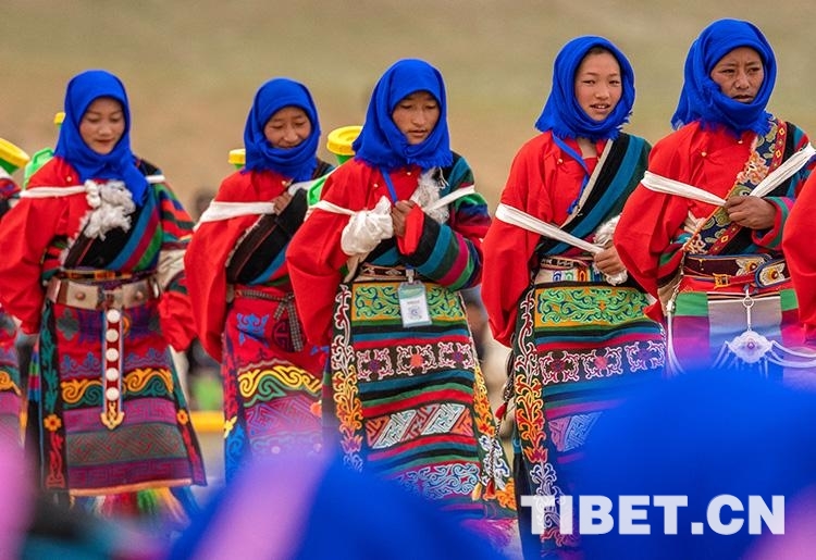 圖為7月25日,班戈縣第七屆納木錯文化旅游民俗風情賽馬藝術(shù)節(jié)開幕式上的文藝表演 攝影:王媛媛