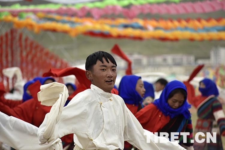 圖為7月25日,班戈縣第七屆納木錯文化旅游民俗風情賽馬藝術(shù)節(jié)開幕式上的文藝表演 攝影:趙耀