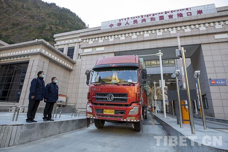 圖為拉薩海關所屬吉隆海關關員在吉隆口岸工作