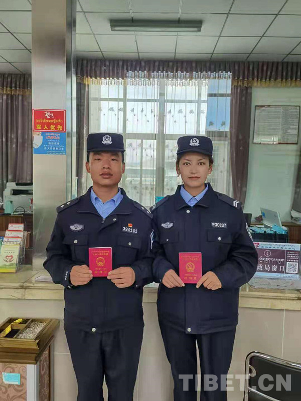 圖為王江鵬和尼瑪普赤領(lǐng)證時的合影