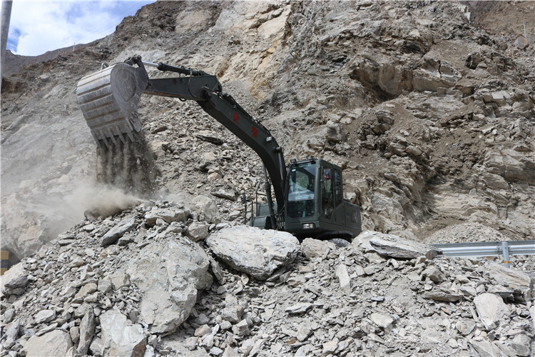 為盡快打通道路,恢復(fù)交通通行,該支隊(duì)官兵采取“雙向掘進(jìn)、多點(diǎn)作業(yè)、先通后拓”的戰(zhàn)法快速對(duì)路面災(zāi)害進(jìn)行清理。在嘎瑪溝塌方災(zāi)害點(diǎn),面對(duì)垮塌下的巨石,官兵們利用多機(jī)協(xié)同作業(yè)的方式,對(duì)巨石進(jìn)行了移除,有效避免了爆破對(duì)村民房屋帶來(lái)的損壞。