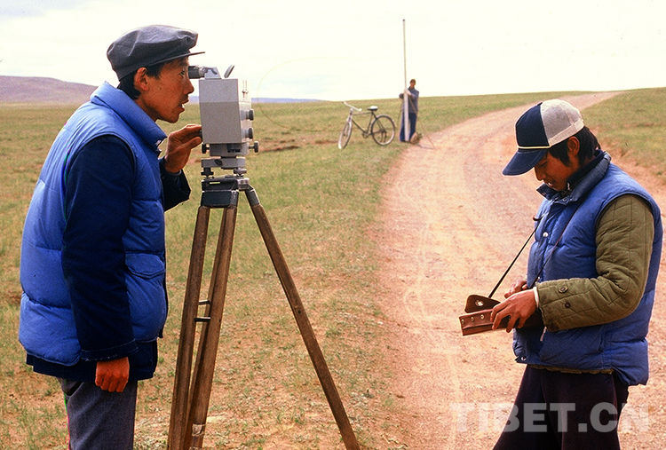 這是陜西省國(guó)家土地管理局科研人員利用衛(wèi)星遙感技術(shù)幫助西藏那曲地區(qū)(現(xiàn)那曲市)進(jìn)行土壤普查(唐召明1987年攝)