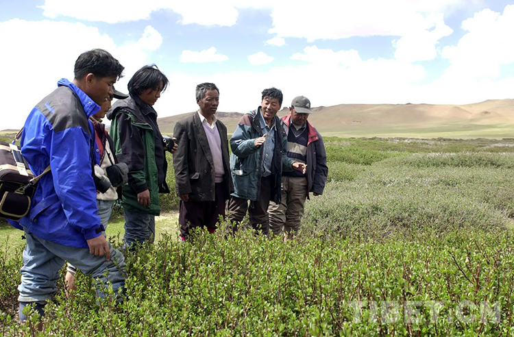 這是藏北無人區(qū)科考團(tuán)科考人員在班戈縣保吉鄉(xiāng)新發(fā)現(xiàn)的大片山柳灌木叢。它是迄今為止所發(fā)現(xiàn)的世界上海拔最高的大片山柳灌木叢(唐召明2001年攝)