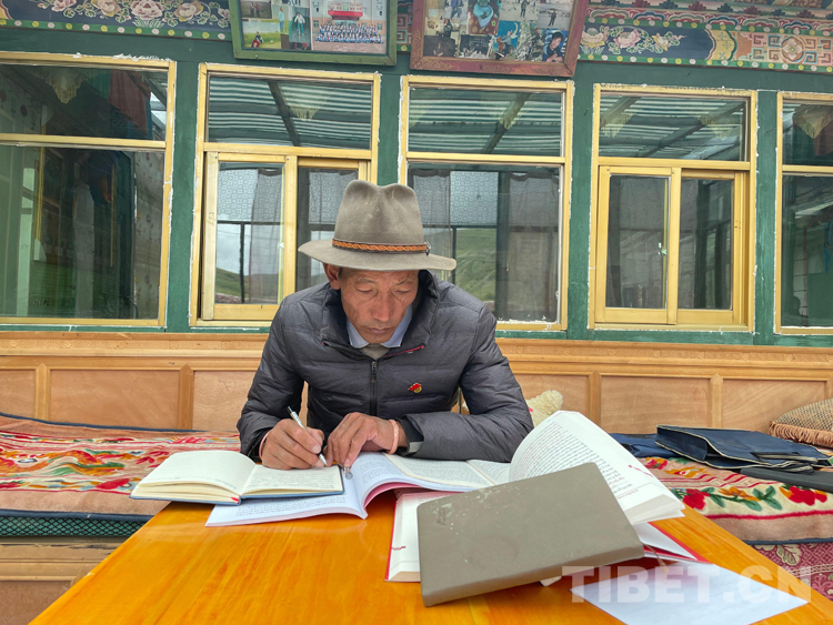 圖為索朗頓珠認(rèn)真做宣講備課
