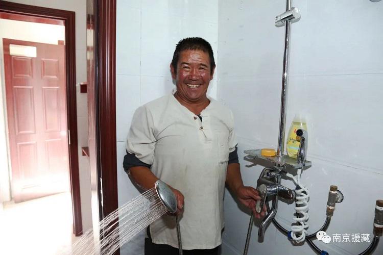 剛從便民公共浴室洗完澡出來的村民旦增洛珠告訴記者,“過去村子里沒有公共浴室,條件也很差,別說村民能洗澡,小孩放學回來洗個澡也是難題,到縣城洗澡交通又太遠。有了便民小浴室,我們洗澡方便了很多,農(nóng)忙期間身體很累自家門口沖個澡特別的舒服,學生放假回來洗個澡也非常方便?!保ㄖ袊鞑鼐W(wǎng) 記者/王佳豪 圖片均來源于南京援藏微信公眾號)