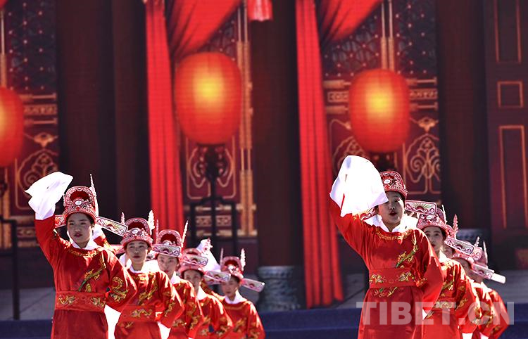 圖為2021雅礱文化旅游節(jié)開(kāi)幕式文藝演出現(xiàn)場(chǎng),山南市第二高級(jí)中學(xué)學(xué)生表演黃梅戲《女駙馬》選段 攝影:王媛媛