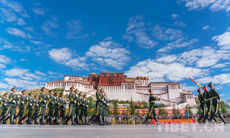 當日,布達拉宮廣場上,漢、藏文“熱烈慶祝中華人民共和國成立72周年”的標語格外醒目,西藏自治區(qū)以及拉薩市各族各界代表共1000余人參加了儀式。(中國西藏網(wǎng) 記者/趙耀)