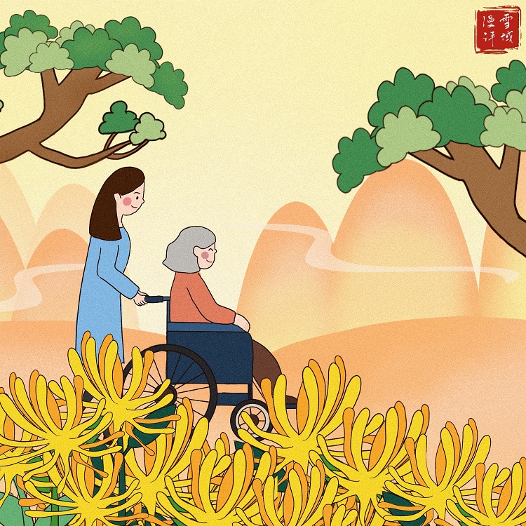 人生易老天難老,歲歲重陽,今又重陽。“誰言寸草心,報得三春暉”“老吾老以及人之老”“天下之本在家”,尊敬老人、孝敬父母,敬老孝老正成為新時代中國的生動生活場景。(中國西藏網 文/王智霖 繪/李絲雨)