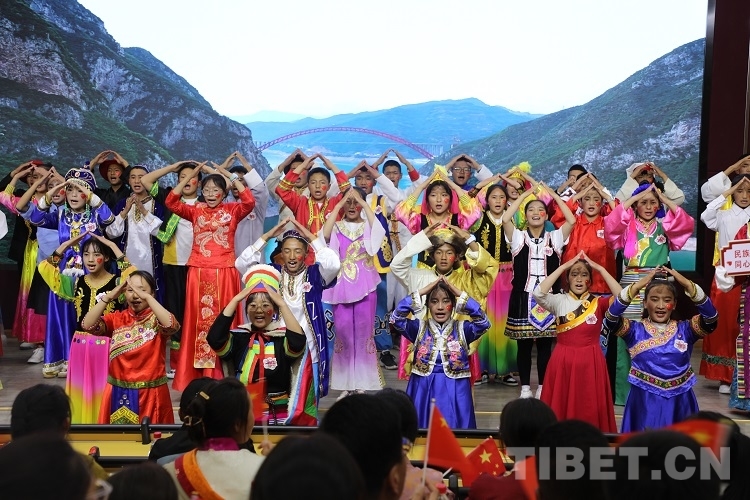 活動(dòng)中,同學(xué)們用藏漢雙語(yǔ)傾情朗誦《石榴籽心連心,民族團(tuán)結(jié)一家親》,深情表達(dá)了對(duì)偉大祖國(guó)深沉熱烈的愛(ài)、對(duì)維護(hù)民族團(tuán)結(jié)堅(jiān)定的信心和決心。山南邊境管理支隊(duì)浪卡子邊境管理大隊(duì)教導(dǎo)員索朗達(dá)杰同志通過(guò)講述邊防部隊(duì)愛(ài)邊守邊、加強(qiáng)民族團(tuán)結(jié)的故事,將無(wú)數(shù)邊防戰(zhàn)士守衛(wèi)國(guó)境線、捍衛(wèi)國(guó)家領(lǐng)土、維護(hù)民族團(tuán)結(jié)的時(shí)代縮影呈現(xiàn)給大家;舞蹈《洗衣歌》生動(dòng)反映了軍民魚(yú)水深情;原雙湖縣中心小學(xué)教師、西藏自治區(qū)民族團(tuán)結(jié)先進(jìn)代表曹小花老師分享了自己在那曲雙湖縣堅(jiān)守12年基礎(chǔ)教育,踐行民族團(tuán)結(jié)的感人經(jīng)歷,在坐的師生深受感動(dòng);索朗頓珠同志講述了卓嘎、央宗姐妹作為“神圣國(guó)土的守護(hù)者”堅(jiān)守玉麥三人鄉(xiāng),踐行“國(guó)是中國(guó) 家是玉麥”的感人故事!在活動(dòng)中,56名同學(xué)身著各民族服裝伴著手語(yǔ)飽含深情地演繹了《國(guó)家》,用指尖唱出對(duì)家的依賴、國(guó)的熱愛(ài);朗誦《請(qǐng)黨放心,強(qiáng)國(guó)有我》鏗鏘有力的展現(xiàn)了新一代西藏團(tuán)員青年在黨的領(lǐng)導(dǎo)下,加強(qiáng)民族團(tuán)結(jié)、建設(shè)美麗西藏的青春誓言!最后,活動(dòng)在全體團(tuán)員青年重溫入團(tuán)誓詞中結(jié)束。
