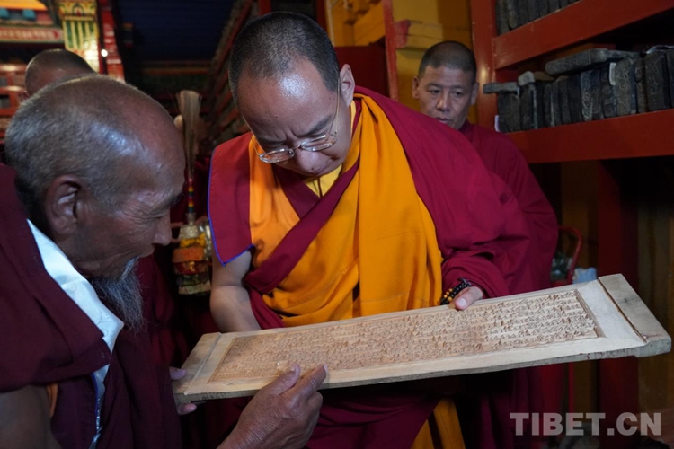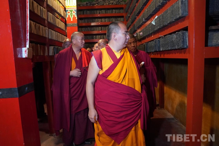 隨后班禪參觀了寺院的印經院,納塘寺印經院被譽為“西藏文庫”。曾刻制印刷大量的藏文經典著作。其中包括大藏經《甘珠爾》108部、《丹珠爾》225部,都是完整的精刻版,除文字外還有套色版畫。此套印版的首次印刷本現(xiàn)珍藏于扎什倫布寺和布達拉宮。