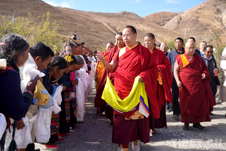 在忙碌有序的11天里,班禪陸續(xù)前往位于桑珠孜區(qū)的色多堅寺、桑旦日追寺、納塘寺,拉孜縣查卡慶寺、增寺、西嘎興龍寺,昂仁縣呂龍寺以及定結縣薩爾曲果德慶林寺等11座寺院,講經、禮佛、參訪、慰問僧尼、看望信教群眾,行程覆蓋海拔2840米到4800多米的高原農牧區(qū),路程達上千公里。