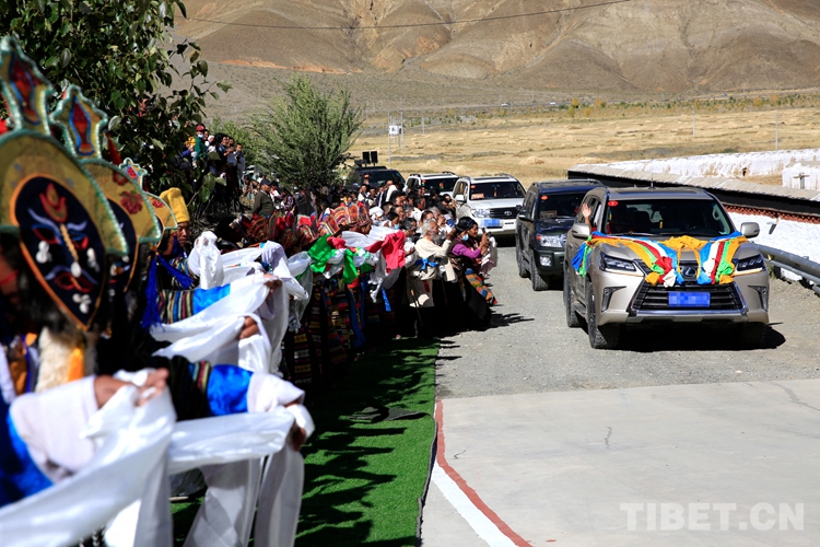 “從村微信群里知道班禪大師要來的消息,我們興奮了好些日子,村民們商量了許久以什么樣的方式迎接班禪大師。老人們說,我們村曾經用藏戲隆重迎接過十世班禪,今天我們也想用傳統(tǒng)的藏戲再次隆重迎接十一世班禪大師,并特意向鄉(xiāng)政府申請得到同意。村民們興奮激動之余,便一遍又一遍排練起藏戲。我們想以咱百姓最好的、最獨特的傳統(tǒng)方式迎接班禪大師。”拉孜縣柳鄉(xiāng)西嘎村村民達娃滿臉幸福地說,“大老遠的,班禪大師能到我們村,心里是說不出的感恩。雖是農忙秋收季節(jié),早早的就忙完農活,穿上新衣,到村口迎接班禪大師,盼望著早早見到班禪大師?!?/p>