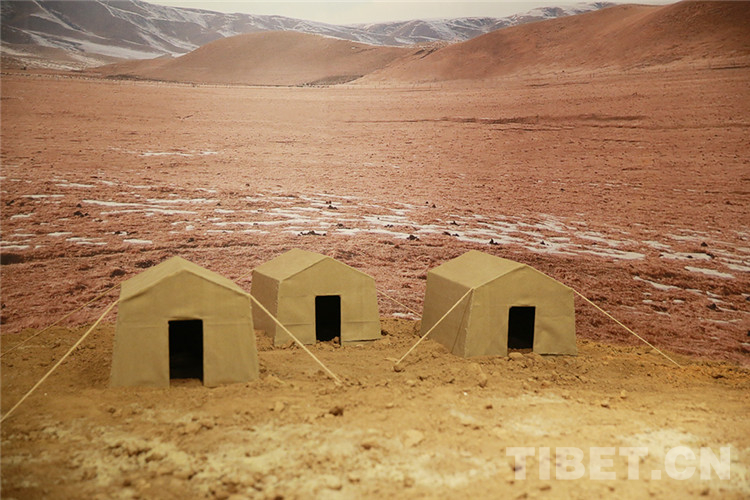 展廳內(nèi)三頂帳篷的模型,模擬了當(dāng)年金銀灘草原上的場(chǎng)景。
