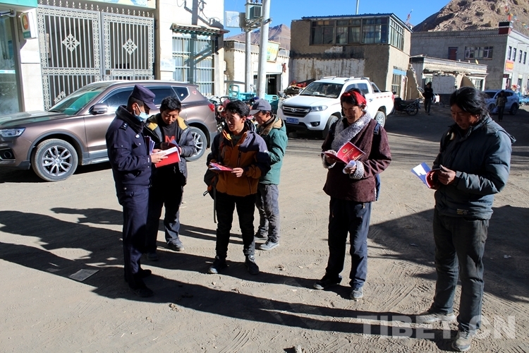 圖為其美多吉在扎西宗鄉(xiāng)街道為轄區(qū)群眾宣傳戶籍辦理的常識(shí)