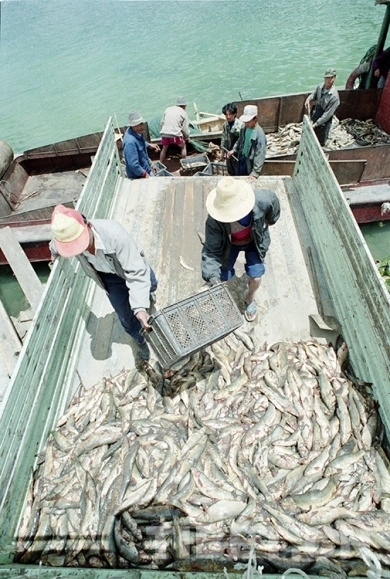 這是在藏北班公湖捕撈豐富的魚(yú)類資源(唐召明1996年攝)