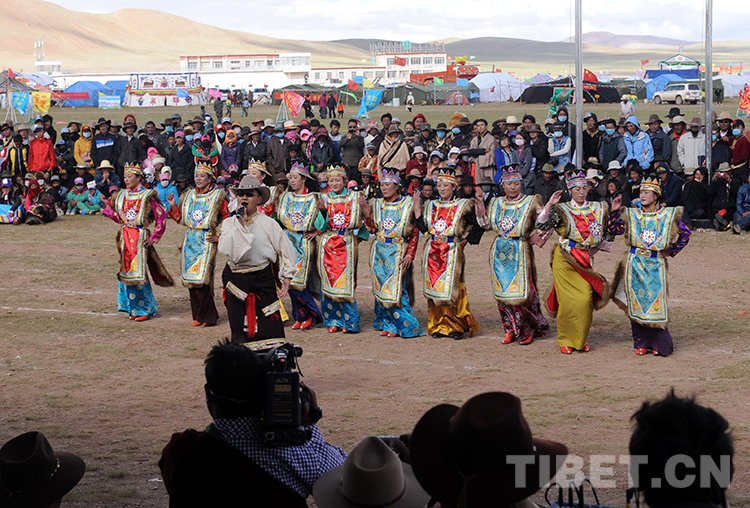 這是雙湖建縣賽馬會上的歌舞表演(唐召明2013年7月27日攝)