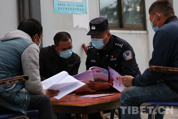 圖為民警為駐地工人講解黨的十九屆六中全會精神 攝影:鄒興國