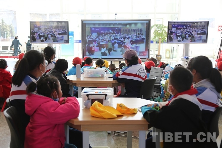 圖為西藏自然科學(xué)博物館受邀連線(xiàn)此次活動(dòng),西藏中小學(xué)生代表準(zhǔn)備連線(xiàn) 攝影:王佳豪