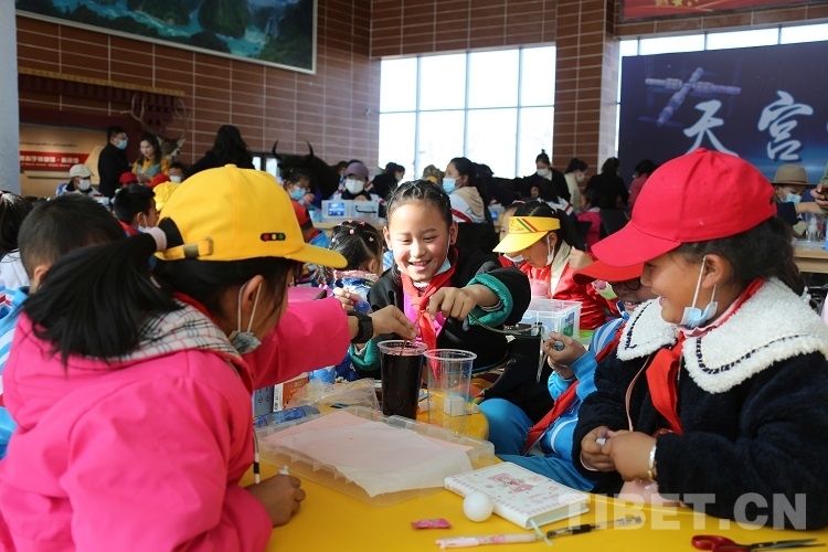 西藏自治區(qū)拉薩市西藏自然科學(xué)博物館內(nèi),在熱巴舞的歡聲律動(dòng)和“液氮火箭”科普實(shí)驗(yàn)的“飛天掠影”中,來(lái)自拉薩市第一小學(xué)和拉薩江蘇實(shí)驗(yàn)中學(xué)的80名學(xué)生共同觀看了“天宮課堂”連線(xiàn)直播,聆聽(tīng)來(lái)自空間站的親切聲音,與中國(guó)空間站內(nèi)的航天員“零距離”同步“天宮課堂”科學(xué)實(shí)驗(yàn)操作。
