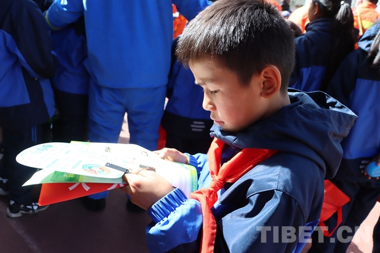 該小學相關負責人表示,通過森林火災安全宣傳教育活動,進一步提升了全校師生的森林防火意識,提高了大家保護生態(tài)的安全意識。圖為小學生閱讀消防員發(fā)放的宣傳冊 (中國西藏網 通訊員/張林)