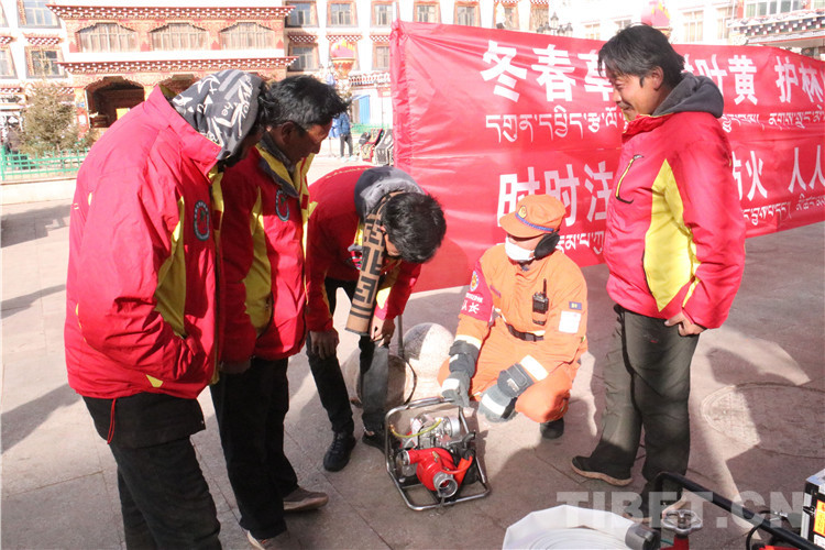 圖為昌都市貢覺縣,消防隊(duì)員向群眾宣傳消防知識(shí)