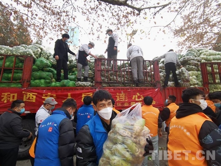 中國西藏網(wǎng)訊 “菜來了!菜來了!”隨著一聲聲歡呼,一輛由河南省南陽市“蔬菜之鄉(xiāng)”新野縣開來的大卡車,緩緩駛?cè)胛鞑孛褡宕髮W。
